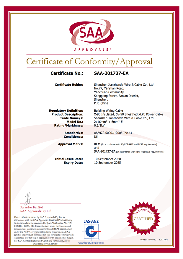 深圳建圳達(dá)電線電纜有限公司,成立于2000年,是一家電線電纜制造商,我們通過了世界各地不同市場(chǎng)的多數(shù)認(rèn)證,如:CCC、RoHS、CB、SAA、TUV、VDE、PSE、BPS、UL、CSA。我們根據(jù)定制產(chǎn)品不斷更新新的認(rèn)證。經(jīng)過數(shù)十年的發(fā)展,我們與來自世界各地的客戶建立了長(zhǎng)期的合作關(guān)系。我們?cè)?jīng)是菲律賓機(jī)場(chǎng),,柬埔寨的電力站,美國(guó)的醫(yī)院,工廠,埃塞俄比亞的水電站項(xiàng)目。我們是一家值得信賴的電線供應(yīng)商。